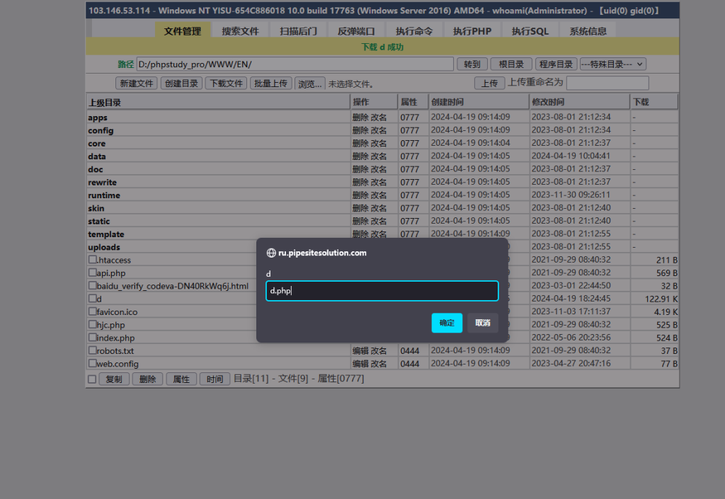 # 旁转种马 首页20244 月19 在 未分类 2024年 4月 19日 0 第一步 查看是否存在旁站 查看旁站 旁站种马 修改名字 查看能不能打开 这样就能 拿到旁站的码 了 发表回复 取消回复您的邮箱地址不会被公开。 必填项已用 * 标注评论 * 显示名称 * 邮箱 * 网站 在此浏览器中保存我的显示名称、邮箱地址和网站地址,以便下次评论时使用。 作者 kingfg1314@gmail.com 相关文章 在 未分类 九天装修 2025年 5月 5日 0 链接 https://pano.kujial... 读出全部 在 未分类 TCP三次握手 通俗版 2025年 3月 30日 0 以下是优化后的内容,使其更简洁明了: TCP... 读出全部 在 未分类 TCP/IP协议中三次握手(Three-way Handshake)与四次挥手(Four-way Wave) 2025年 3月 16日 0 @[TOC](TCP/IP协议中三次握手(T... 读出全部 在 未分类 TCP/IP四层网络模型 2025年 3月 14日 0 @TOC 整理一下TCP/IP四层网络模型和... 读出全部 在 未分类 装修计划 2024年 12月 25日 0 水电 燃气热水器根据 也可以放在油烟机旁边 读出全部 在 未分类 清理木马 2024年 11月 15日 0 读出全部 文章导航 上篇文章下篇文章